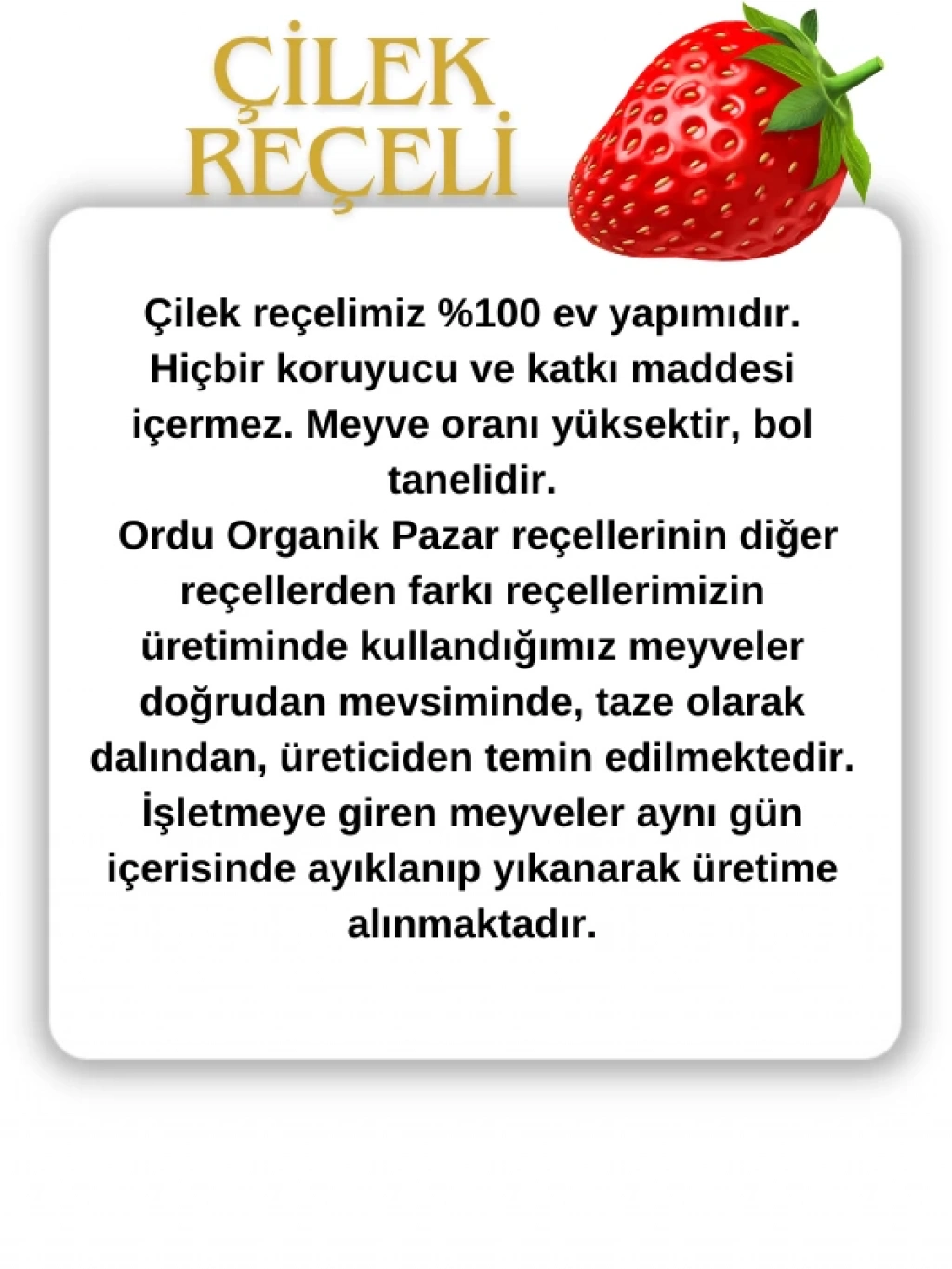 Çilek reçelimiz %100 ev yapımıdır.