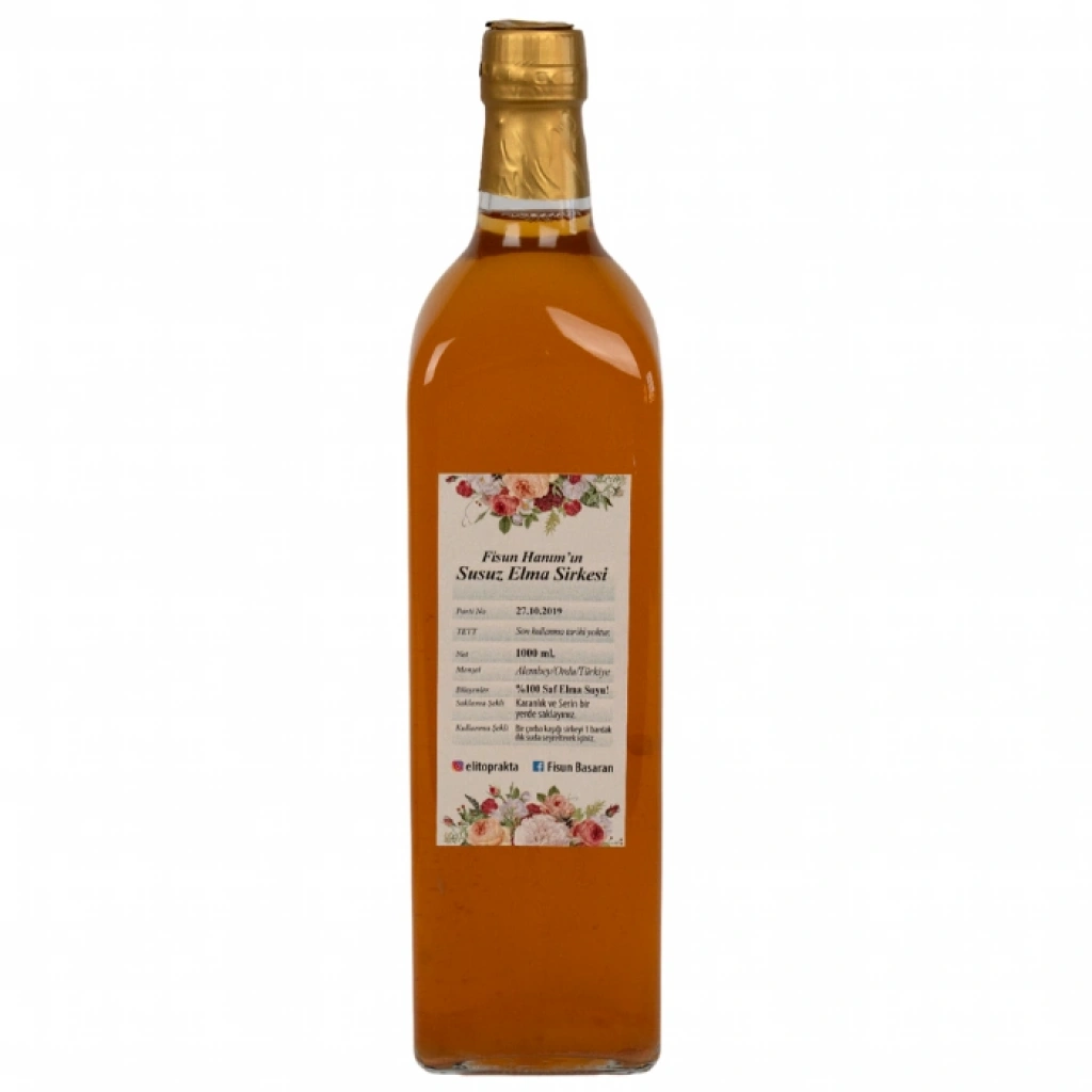 Susuz Doğal Elma Sirkesi 4 yıl dinlendirilip 1000 ML cam şişelerde satışa sunulmaktadır.