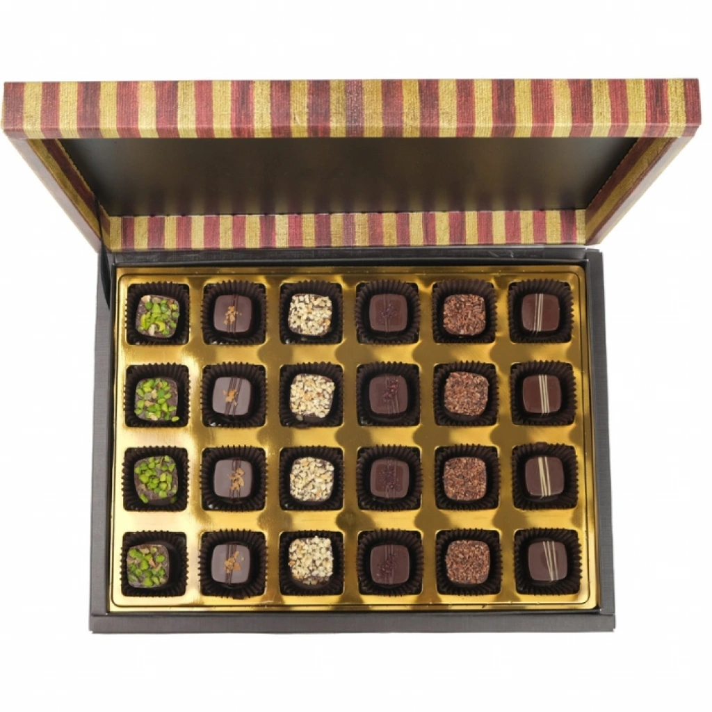 Bayrama özel hediyelik kutuda toplam 500 gram karışık bonbon çikolata bulunmaktadır. Kutu içerisinde karamelli, lotuslu, kahveli, antep fıstıklı, karadutlu ve fındıklı çikolata bulunmaktadır. Karışık special olması nedeniyle tüm zevklere hitap eden bir kutudur.